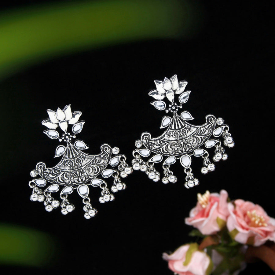 Antique Gold Plated Stone Studded with golden beads Lotus Design Earring