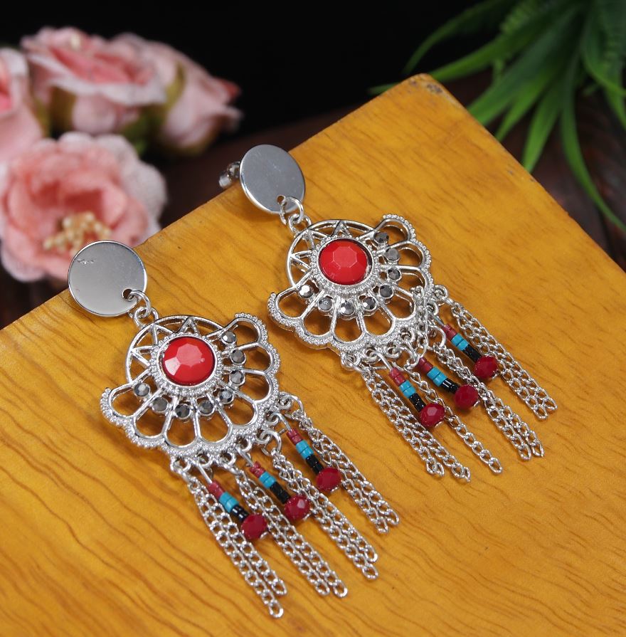 Antique Gold/Silver Plated Multi Coloured Chain Dangle Earring