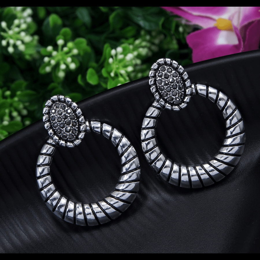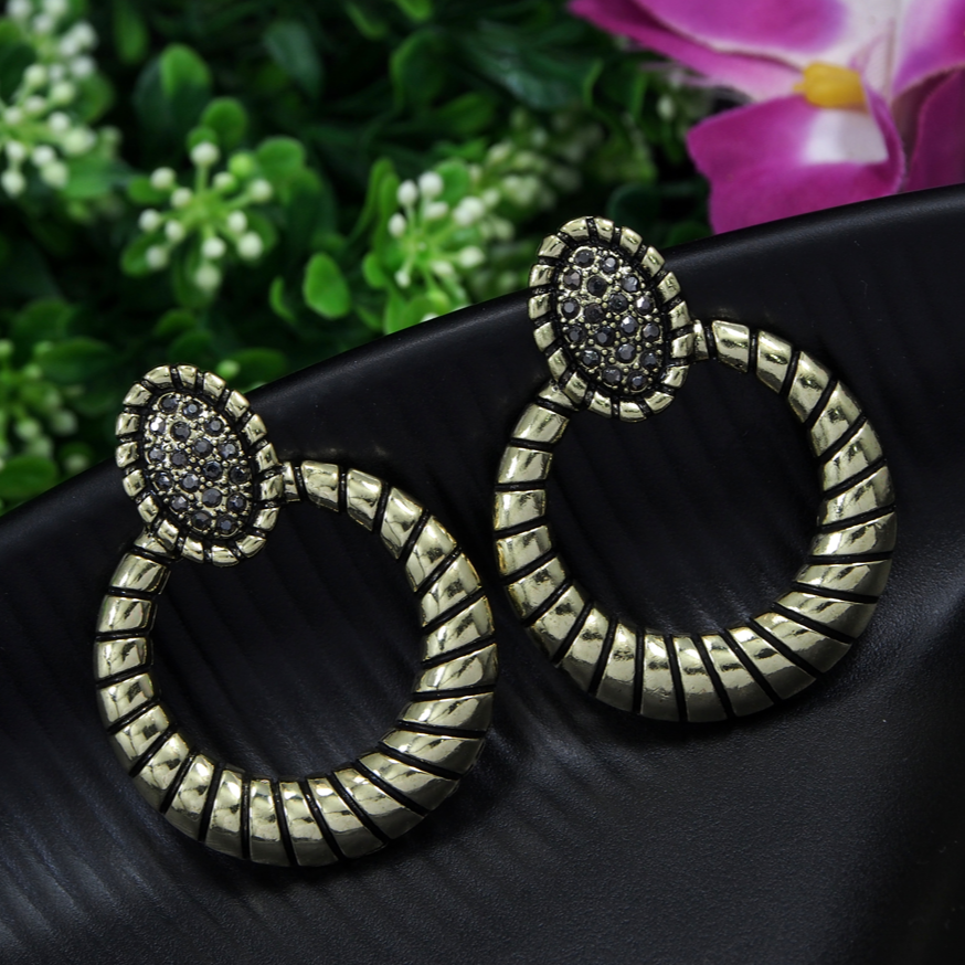 Antique Gold/Silver Plated Rustic Round Shaped Drop Earring