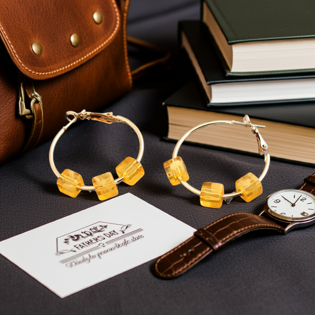 ( Pack Of 3 ) Gold Plated Circular Shaped Acrylic Beads Hoops Earring