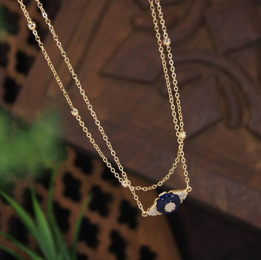 Gold/Rosegold Plated Multi Layered Evil eye Pendent Cubic Zirconia Necklace
