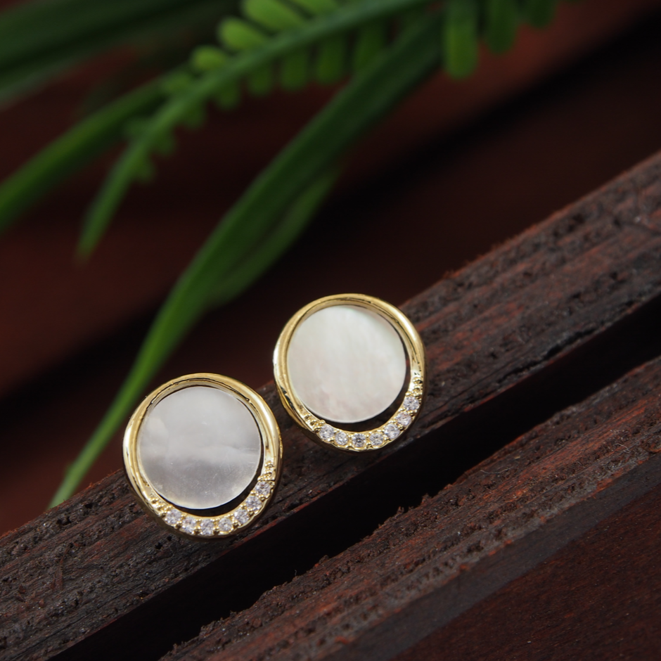 Korean Gold/Silver/Rosegold Plated opal Round Shaped Stud Earring