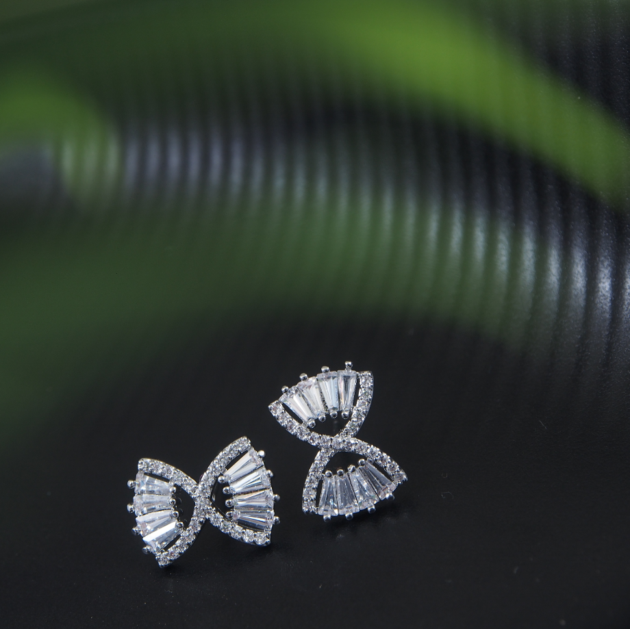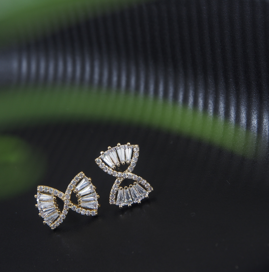 Korean Gold/Silver/Rosegold Plated Timer Hourglass Shaped CZ Stud Earring