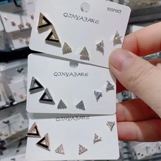 Korean Triangle Cubic Zirconia Three Pair Earring