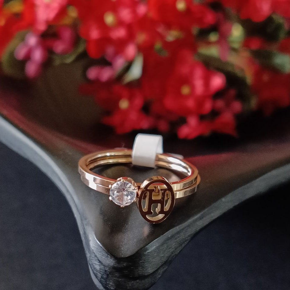 Rose Gold Plated 'H' Letter designed CZ Stainless Steel Double Finger Ring
