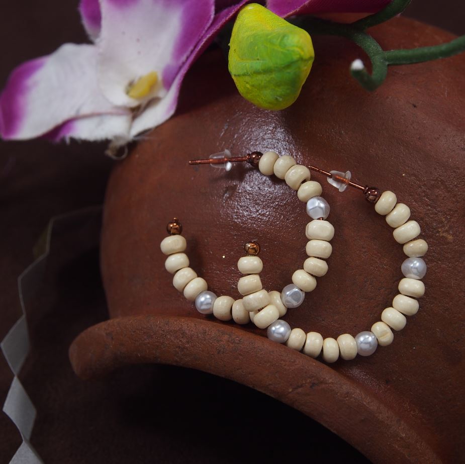 Rosegold Plated Round Pearl Western Hoops Earring